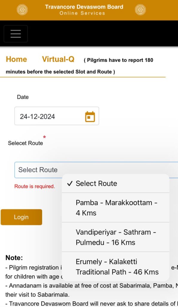 Start by visiting the official Sabarimala online booking portal at https://sabarimalaonline.org/. This is the authorized platform for booking darshan tickets and checking availability. Once you’re on the homepage, you will see the options to select your desired date and time for darshan.